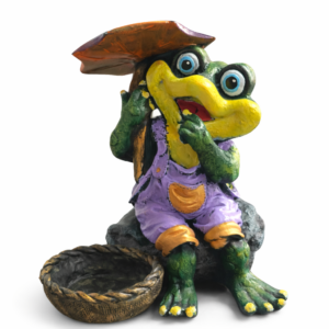 Designul jucăuș, cu două broaște viu colorate așezate pe o buturugă, transmite energie pozitivă și naturalețe. Detaliile atent realizate și culorile vibrante transformă această statuie într-un element decorativ de impact, ideal pentru cei care își doresc un decor original și plin de personalitate.