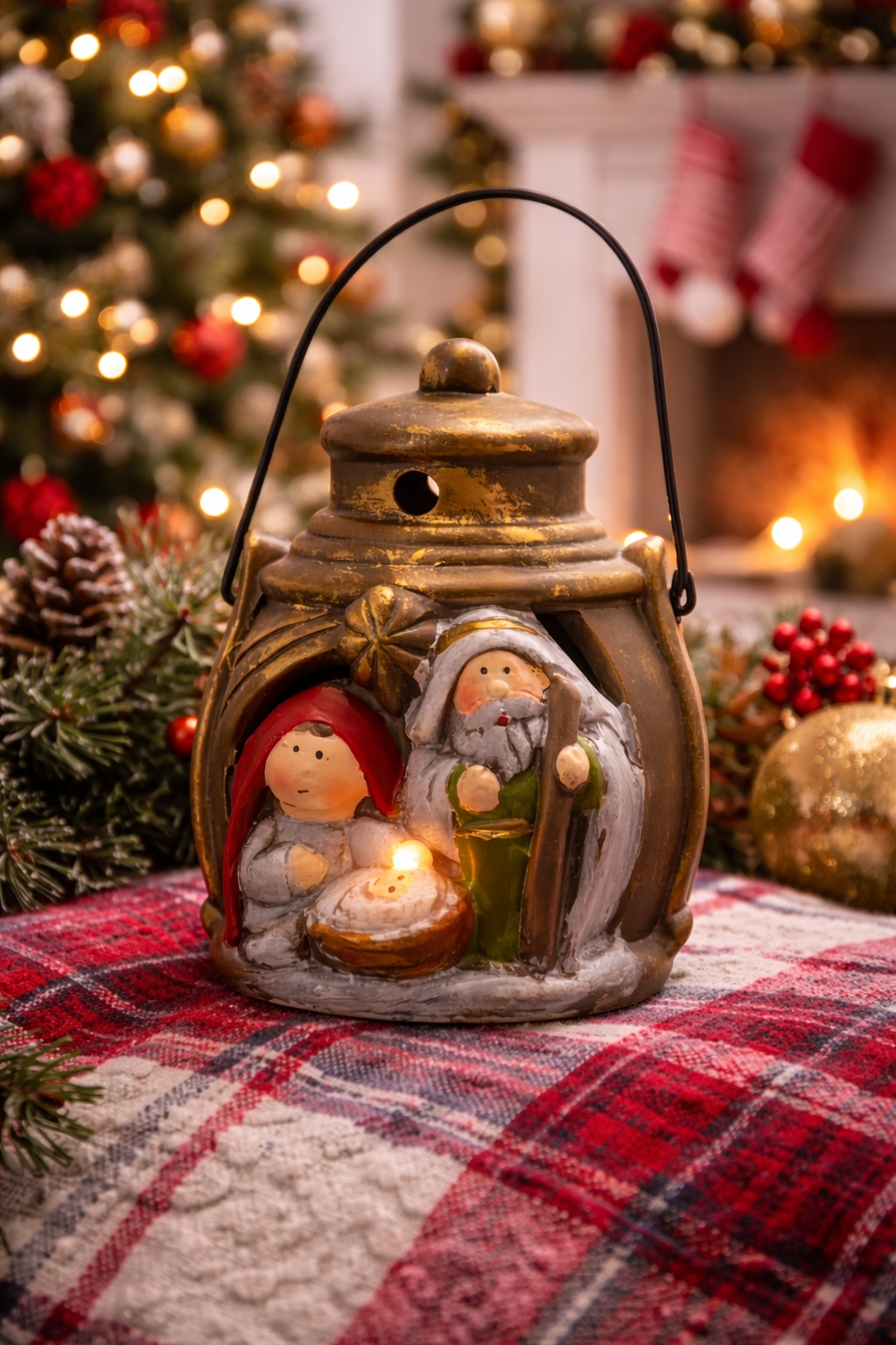 ✨ Iluminare ambientală caldă și scenă simbolică pentru un Crăciun plin de sens.